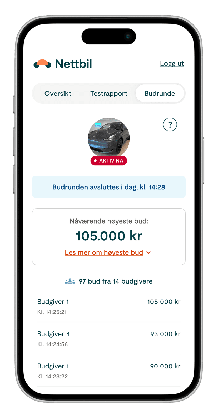 Bilen din annonseres for mer enn 2000 forhandlere som kjemper om å få kjøpe den. Om de får kjøpe den er opp til deg.